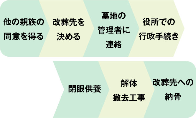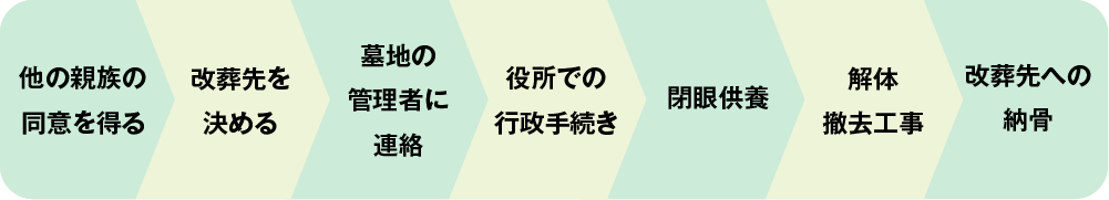 いずれの場合でも、既存のお墓の管理者・管轄行政・改葬先での手続きが必要となります。 リーガルフォーワンがすべてサポートいたします。